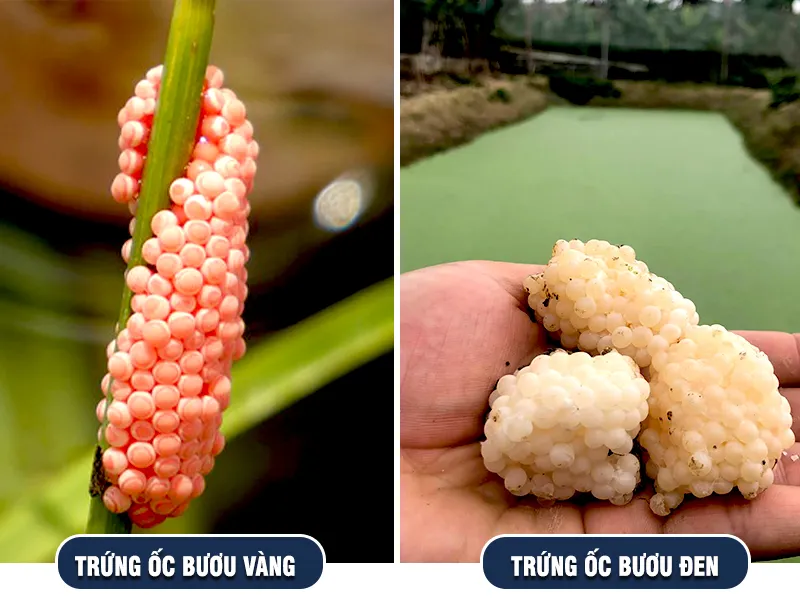 Phân biệt qua trứng ốc bươu đen và trứng ốc bươu vàng