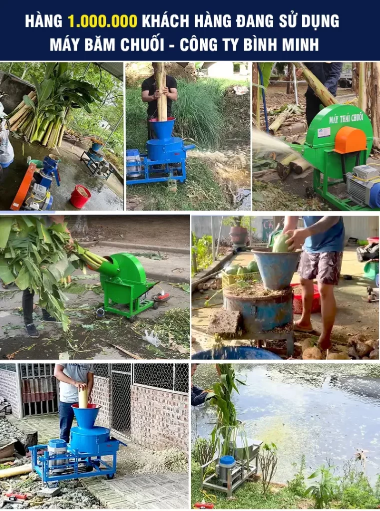 - Đa năng hoá nguồn thức ăn: ngoài chuối máy còn băm được rau bèo, cỏ voi, thân ngô giúp bà con ủ chua dự trữ thức ăn lâu dài