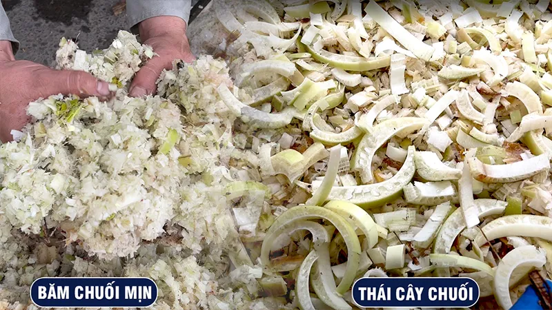- Đối với gà, vịt: cần sử dụng máy thái chuối mịn, băm nhuyễn nát ngay trong lần băm để vật nuôi dễ ăn