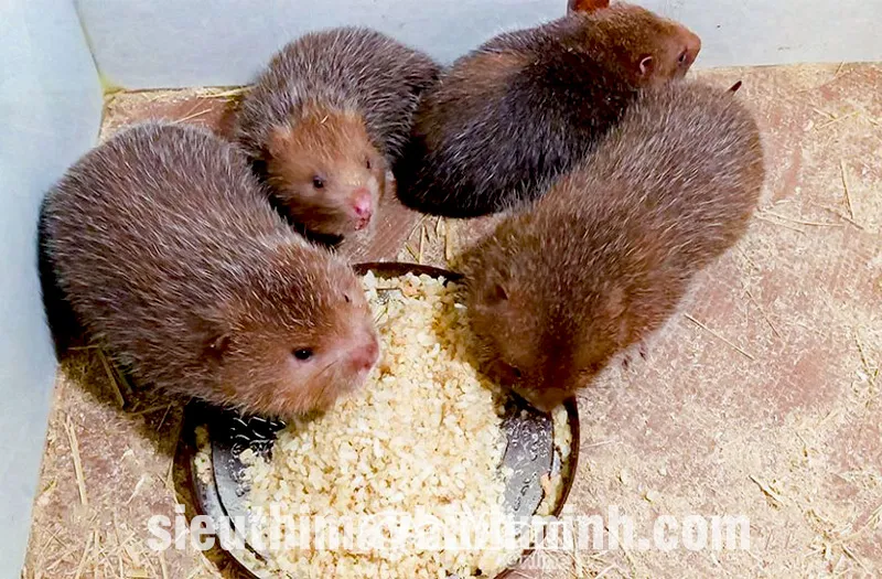 - Đối với Dúi sinh sản hoặc nuôi vỗ béo, có thể bổ sung thêm cơm trộn bột ngô hoặc thức ăn viên tổng hợp để tăng cường protein