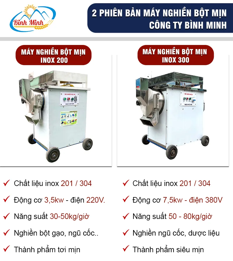 Hiện công ty có 2 phiên bản máy xay bột siêu mịn với năng suất và giá tiền khác nhau cho bà con lựa chọn