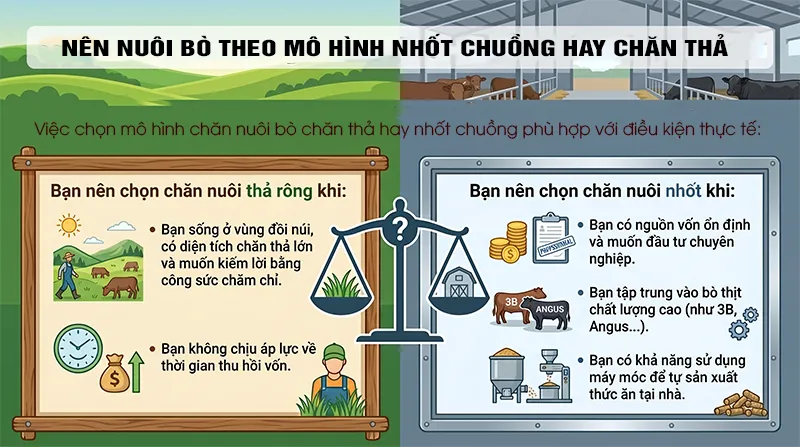 Việc chọn mô hình chăn nuôi bò chăn thả hay nhốt chuồng phù hợp với điều kiện thực tế:
