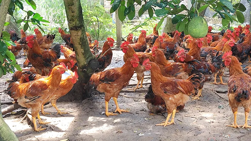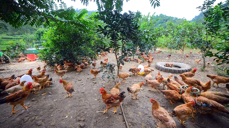 Cho gà vận động nhiều dưới ánh nắng mặt trời giúp khung xương chắc khoẻ và tiêu hoá tốt hơn