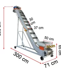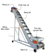 Trên bề mặt băng tải kết hợp với các thanh ngang tạo thành các khoang chứa nhất định, giúp nguyên liệu không rơi ra ngoài
