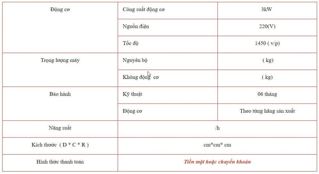 Motor được lắp theo máy với thông số 3kw – 1450v/p, sử dụng nguồn điện gia đình