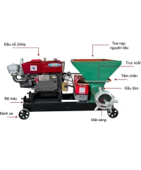 - Khởi động đầu nổ cho máy chạy không tải kiểm tra máy rồi từ từ cho nguyên liệu vào phễu