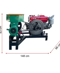 Sử dụng đầu nổ D15 truyền lực qua 3 dây curoa, máy cho năng suất khoảng từ 400 – 600 kg/giờ, đáp ứng tốt nhu cầu chăn nuôi