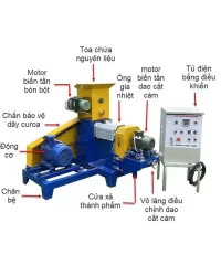 Dưới nhiệt độ cao, nguyên liệu trong phễu nạp sẽ được bộ phận gia nhiệt làm chín và xốp viên cám tăng khả năng nổi trên mặt nước và giúp vật nuôi tiêu hóa tốt hơn.