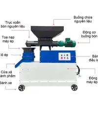 Máy có thể ép hỗn hợp bột cám, ngô hạt vá các loại phụ phẩm khác, tất cả được trộn đều đạt độ ẩm khoảng 15-20%, bạn chỉ cần đưa chúng vào thùng chứa phía trên với sức chứa 10 – 20 kg/mẻ