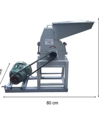 Máng nạp nguyên liệu được thiết rộng rãi, có thể đựng được nhiều nguyên liệu trong 1 lần. Buồng làm việc được thiết kế gồm 18 búa đập, có nhiệm vụ quay tròn làm nguyên liệu vỡ nhỏ, do sự va đập nhiều lần giữa búa nghiền và thành máy, nguyên liệu sẽ được nghiền nhỏ thành các kích cỡ khác nhau sau đó lọt qua lưới xàng qua cửa xả ra ngoài.