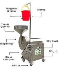 Đặc biệt, phía trên toa nạp được trang bị móc treo thùng chứa nước có van sả, điều chỉnh lượng nước chảy đều xuyên suốt quá trình nghiền