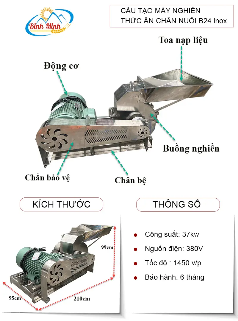 Máy Nghiền Thức Ăn Chăn Nuôi B24 inox