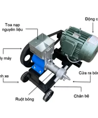 - Máy gồm các bộ phận chính như: cửa nạp nguyên liệu, cửa xả thành phẩm và lõi nổ bỏng.